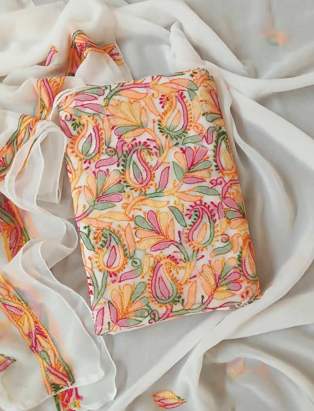 Chikankari Suit Set | Resham Thread Best Quality | Kurta/Bottom/Dupatta (unstitched)