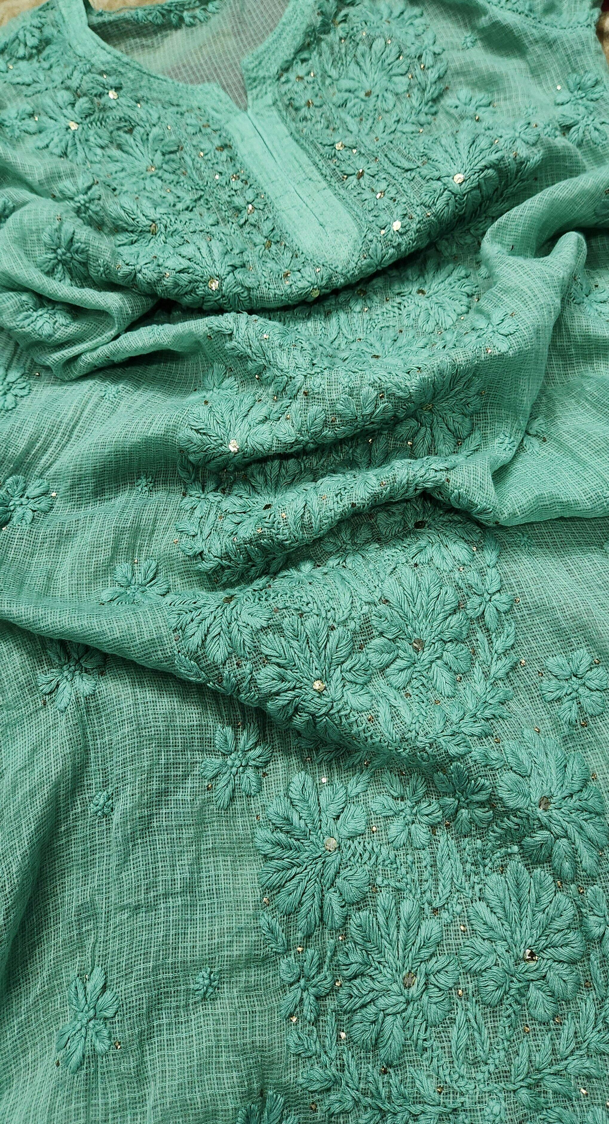 Elegant Kota Doria Chikankari Kurti with Mukaish Panel Work – Premium Segment