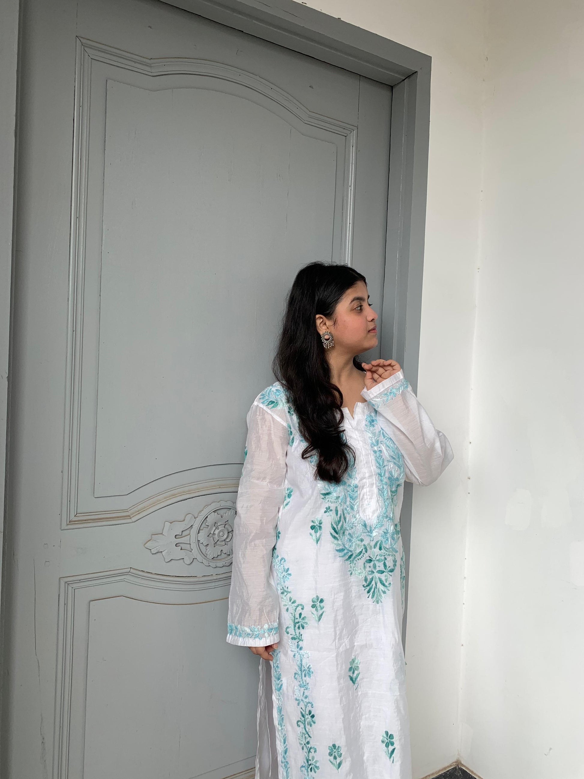24% Off Limited TimeChanderi Silk Kurti- Authentic Chikankari