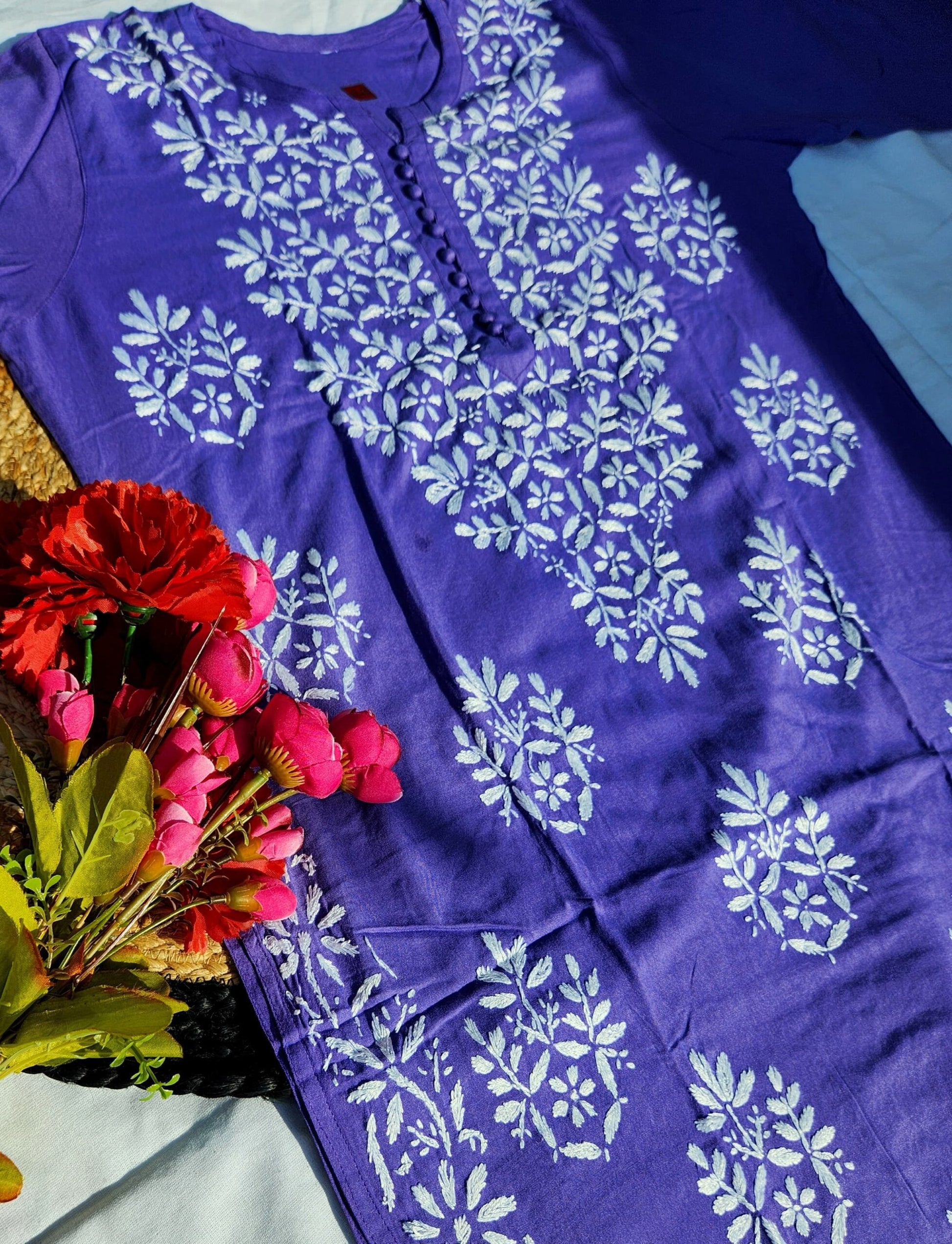 New Modal Chikankari Kurti Elegant Knee Long Length.